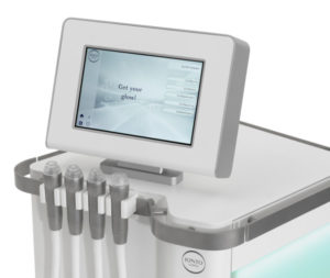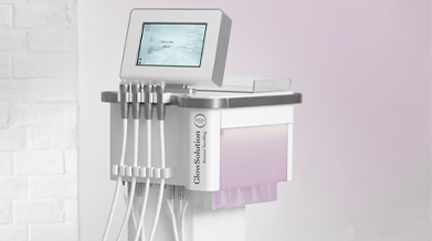 Das GlowSolution von Ionto greift das Prinzip der hydrobasierten Behandlung auf und vereint 4 Behandlungstechniken in einer einzigen Geräteplattform mit vier verschiedenen Behandlungsköpfen.