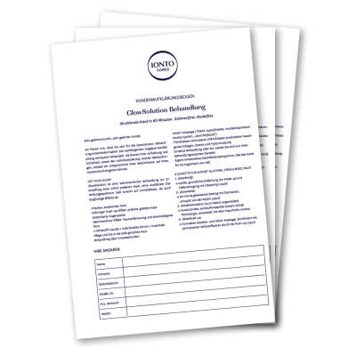Unsere professionellen Aufklärungsbögen für GlowSolution bieten KosmetikerInnen eine klare und verständliche Dokumentation, die KundInnen umfassend über die Behandlung, Vorteile, mögliche Nebenwirkungen und Nachsorge informiert.