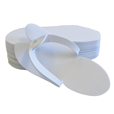 Praktische Einmalschläppchen aus Schaumgummi in Flip-Flop-Form. Mit rutschfester Sohle, in Einheitsgröße. Ideal zum Einsatz in der Kabine bei Körperanwendungen oder für das Lackieren von Fußnägeln um eine anschließende Bewegungsfreiheit zu ermöglichen.
