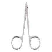 Eckenzange mit extra schmaler Spitze und schlanken Schnittflächen. Optimal bei extrem eingewachsenen, eingerollten oder schwer zugänglichen Nagelecken.