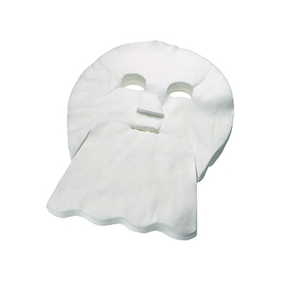 Ungetränkte Vliesmaske mit Aussparungen für Augen, Mund und Nase. Bedeckt den Hals bis zum Dekolleté.
