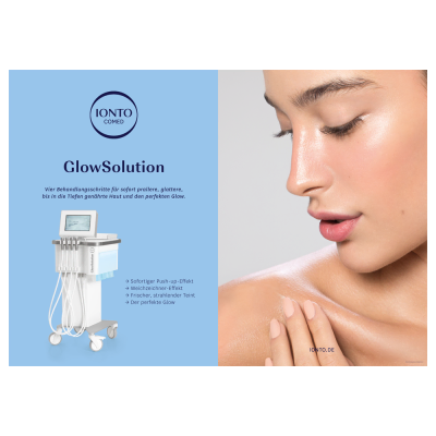 Plakat zur professionellen Bewerbung der GlowSolution-Behandlung inkl. zwei Kunststoffschienen für eine optimale Befestigung.