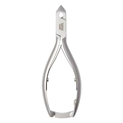 Spitzeninstrument für die exakte Bearbeitung von Nägeln. Halbe Schneide für einseitigen Schnitt. Oberfläche sandgestrahlt, mit Doppelfeder.