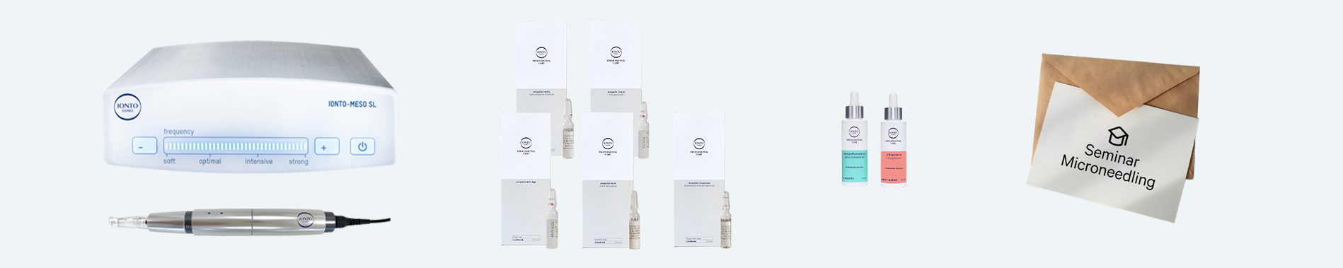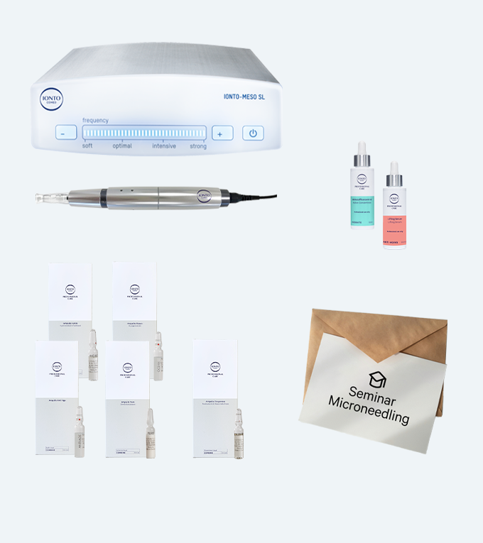 *Paket beinhaltet: IONTO-NEEDLING, 5 Sorten Ampullen, HYDRATE Wirkstoffkonzentrat, ANTI-AGING Lifting Serum & Training Microneedling
