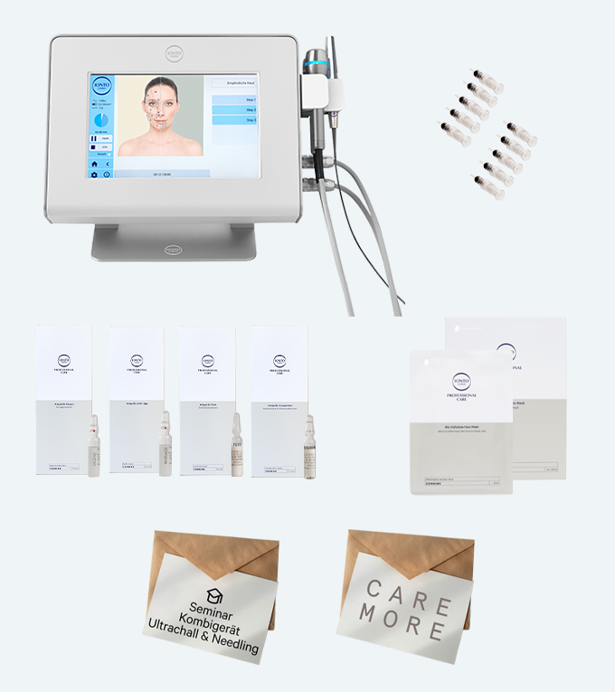*Paket beinhaltet: IONTO-SONO Intense N, 5 Sorten Ampullen, Bio-Cellulose Mask Beetox Age Reverse, Kunststoffnadeln, Training zur Kombi-Behandlung & CARE MORE Gutschein